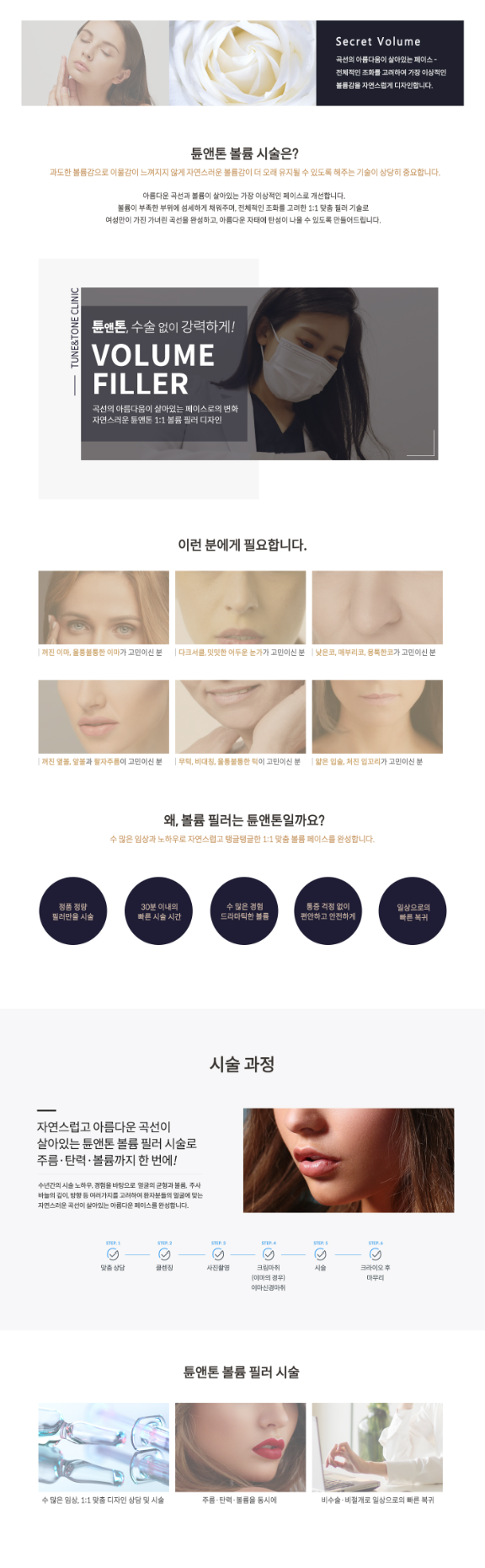 과도한 볼륨감으로 이물감이 느껴지지 않게 자연스로운 볼륨감이 더 오래 유지될 수 있도록 해주는 기술이 상당히 중요합니다.